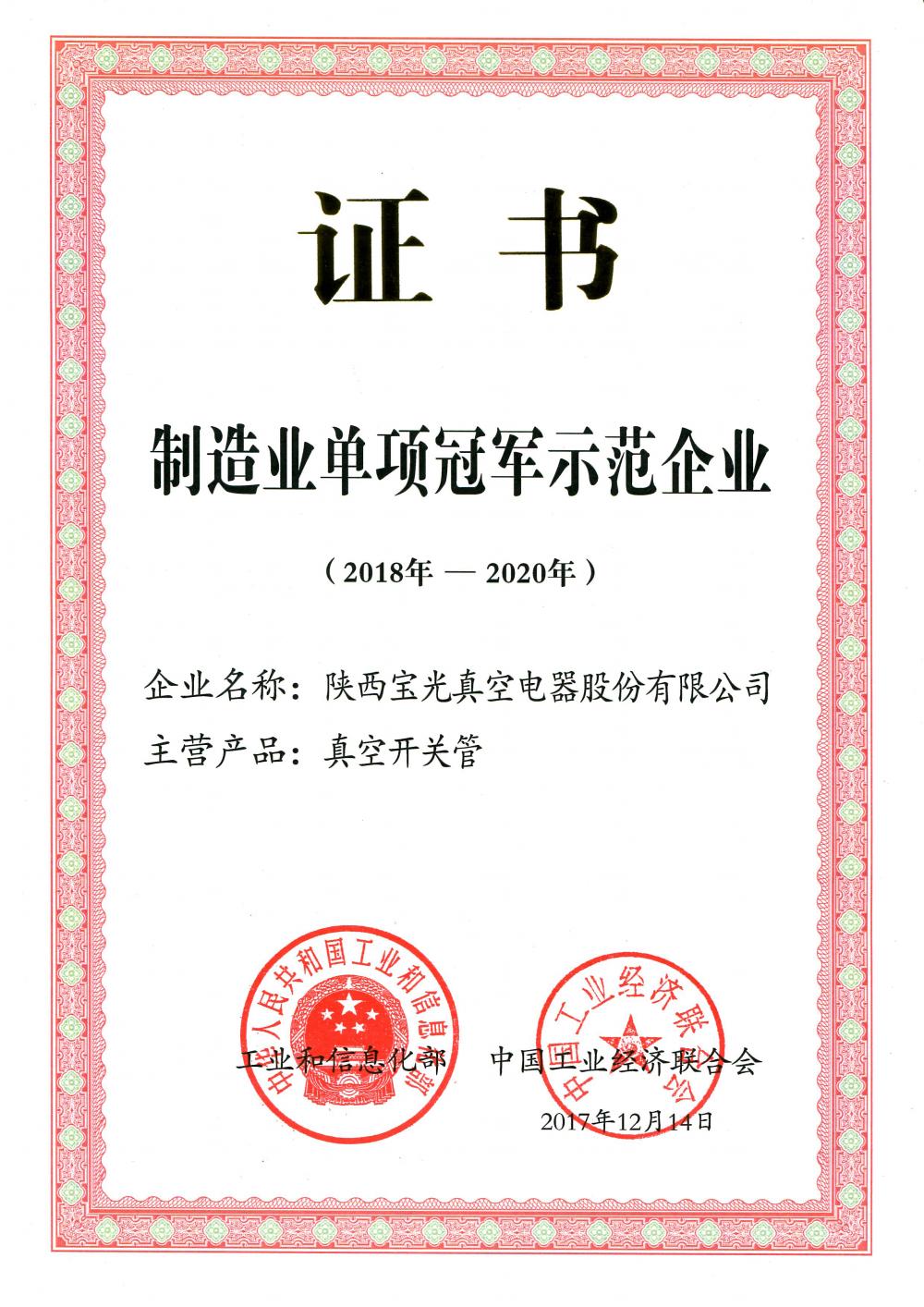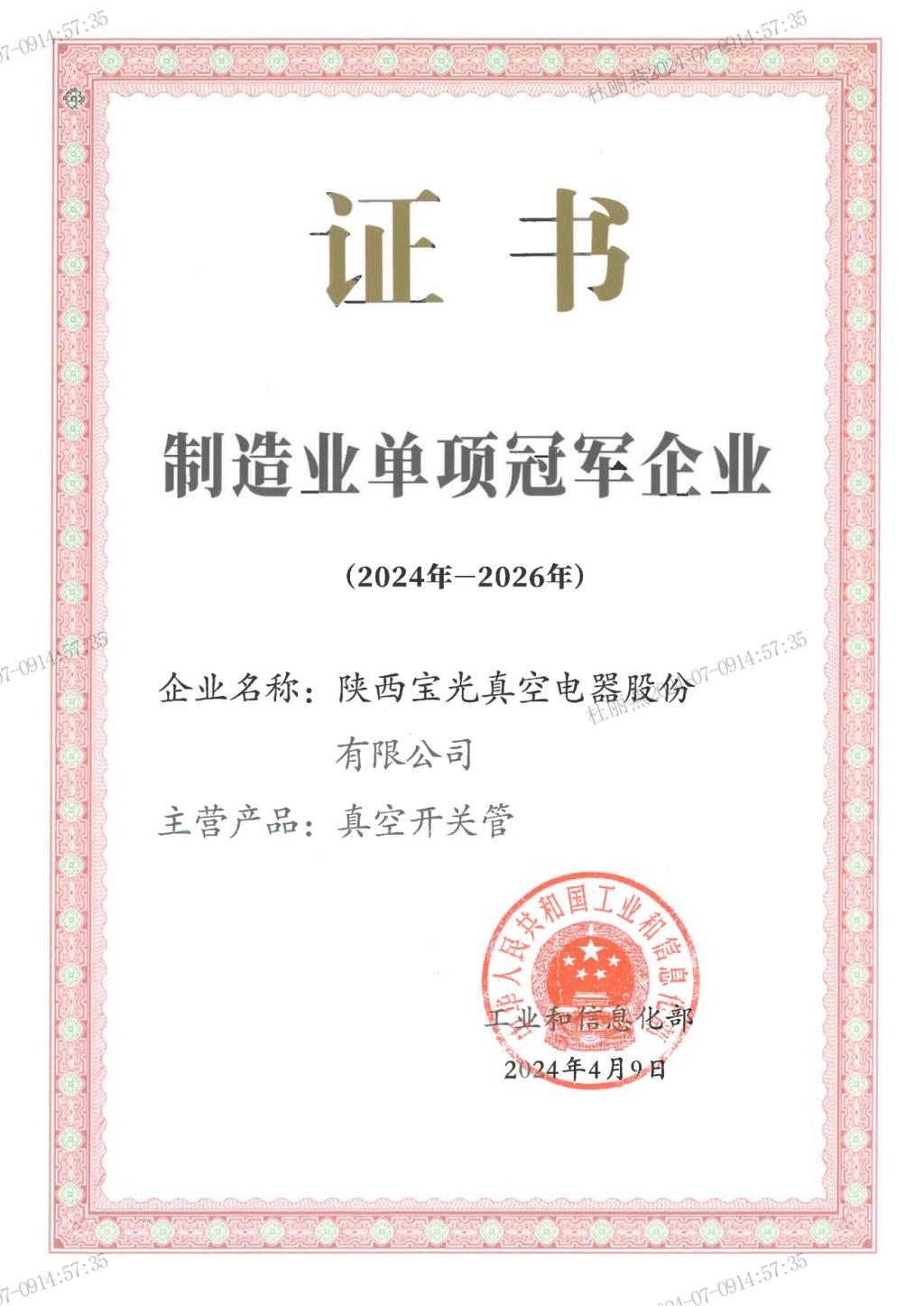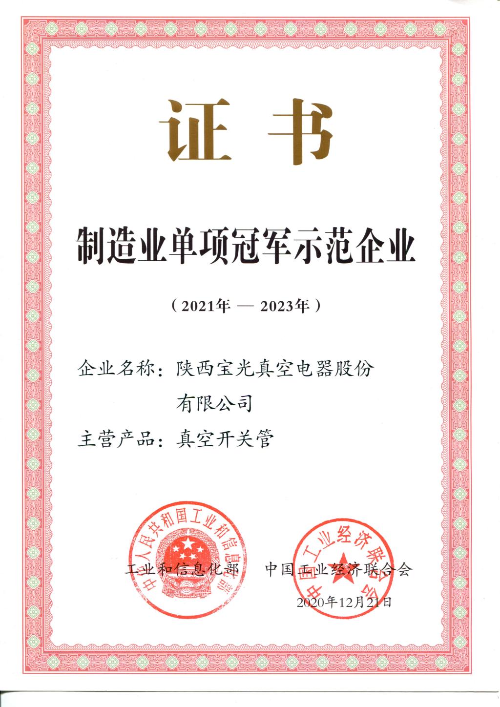 2024年榮獲制造業(yè)單項冠軍企業(yè)