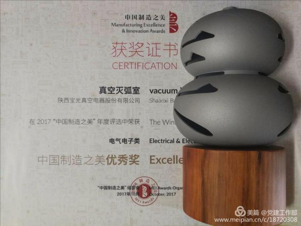 真空滅弧室榮獲中國制造之美優(yōu)秀獎