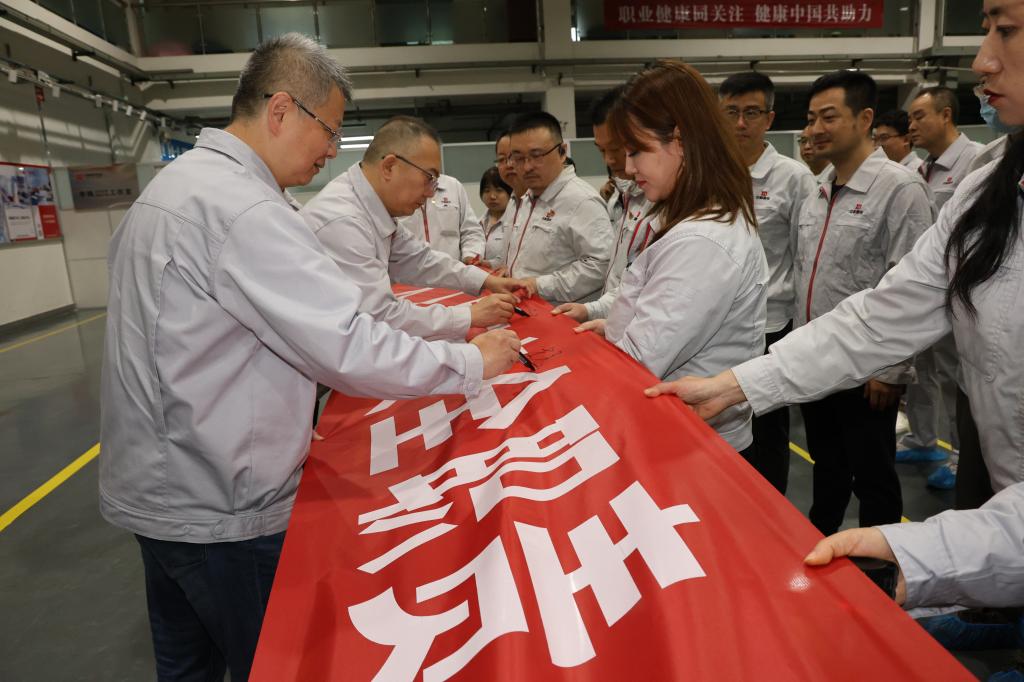 啟動(dòng)儀式上,滅弧室產(chǎn)品制造部負(fù)責(zé)人帶領(lǐng)全員進(jìn)行了安全宣誓并在紅幅簽名。希望通過一系列的安全月活動(dòng),使全體員工充分認(rèn)識(shí)到安全生產(chǎn)工作的重要性,確保公司安全生產(chǎn)形勢(shì)的穩(wěn)定和提高。李毅作重要講話,他指出,要深入宣傳貫徹黨的二十大精神和習(xí)近平總書記關(guān)于安全生產(chǎn)重要論述,認(rèn)真落實(shí)黨中央、國(guó)務(wù)院決策部署,圍繞“人人講安全、個(gè)個(gè)會(huì)應(yīng)急”主題,突出寶光股份安全文化培育,推動(dòng)樹牢安全發(fā)展理念,落實(shí)安全生產(chǎn)責(zé)任,深化重大事故隱患專項(xiàng)排查整治,有效防范化解重大安全風(fēng)險(xiǎn),堅(jiān)決遏制重特大事故,以高水平安全保障高質(zhì)量發(fā)展。