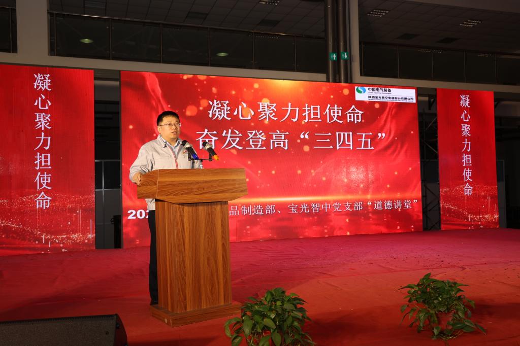 為提升廣大職工思想道德修養,扎實推進企業精神文明建設,進一步激發廣大干部職工齊心協力、干事創業、勇拓新局的信心和決心,以優異成績完成“十四五”登高目標,12月8日下午,由寶光股份黨委主辦,滅弧室產品制造部黨支部、寶光智中公司黨支部聯合承辦的“凝心聚力擔使命,奮發登高‘三四五’”道德講堂活動順利舉行。寶光股份黨委書記、董事長謝洪濤,寶光股份黨委副書記、總經理劉壯出席會議并作點評講話。