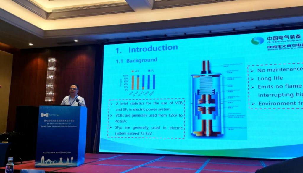 2024年11月11日至13日,第七屆電力裝備開斷技術國際會議(ICEPE-ST 2024)在廈門召開,公司黨委副書記、總經理劉壯帶領技術和市場團隊參加會議,并進行技術交流和產品宣講,向學術界同仁展現了公司技術研究和產品開發方面的最新成果。
