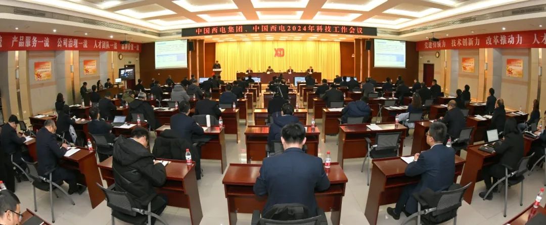 中國西電黨委副書記、總經理趙啟出席會議并講話,中國西電集團黨委副書記、總經理韓兵主持會議并總結,中國西電黨委常委、副總經理謝慶峰傳達中國電氣裝備2024年科技創新工作會議精神,科技創新部作《2024年科技工作報告》。