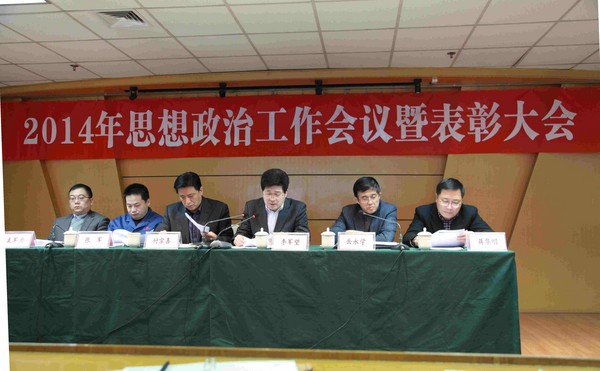2月28日下午,公司2014年思想政治工作會議暨表彰大會在科技大樓二樓大會議室舉行。公司領導李軍望、付宗喜、岳永學、張軍、蔣華明、袁軍為參加了大會并在主席臺就坐,集團、股份公司全體黨支部書記、分會主席,及公司黨委、勞動競賽委、工會及團委系統2013年度受表彰的個人、集體、班組代表,近150人參加了會議。