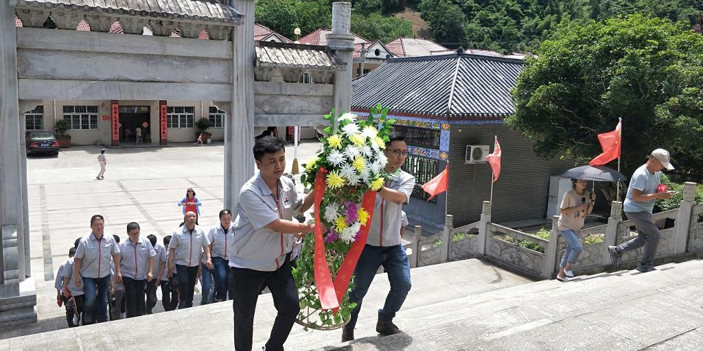 在紅軍鎮,全體黨員步行來到紅軍英雄紀念碑前,向革命先烈敬獻花籃,并向烈士三鞠躬,緬懷先烈的豐功偉績。大家莊嚴肅立,面向黨旗,舉起右拳,重溫入黨誓詞,表達了自己永遠跟黨走的信念和決心。