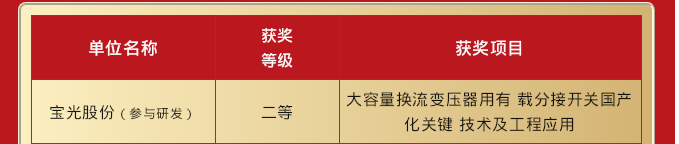 寶光股份獲各類獎項共計2項,參與科技進步獎二等獎1項!獲得科技進步獎三等獎1項!